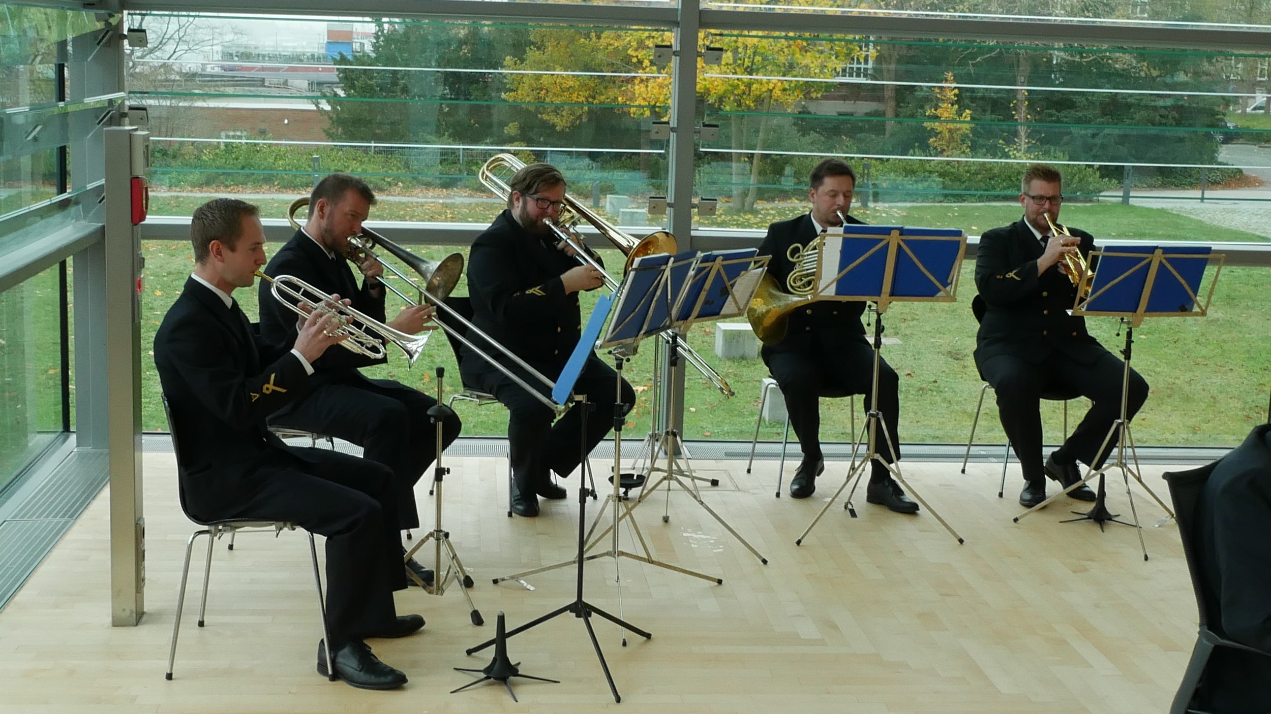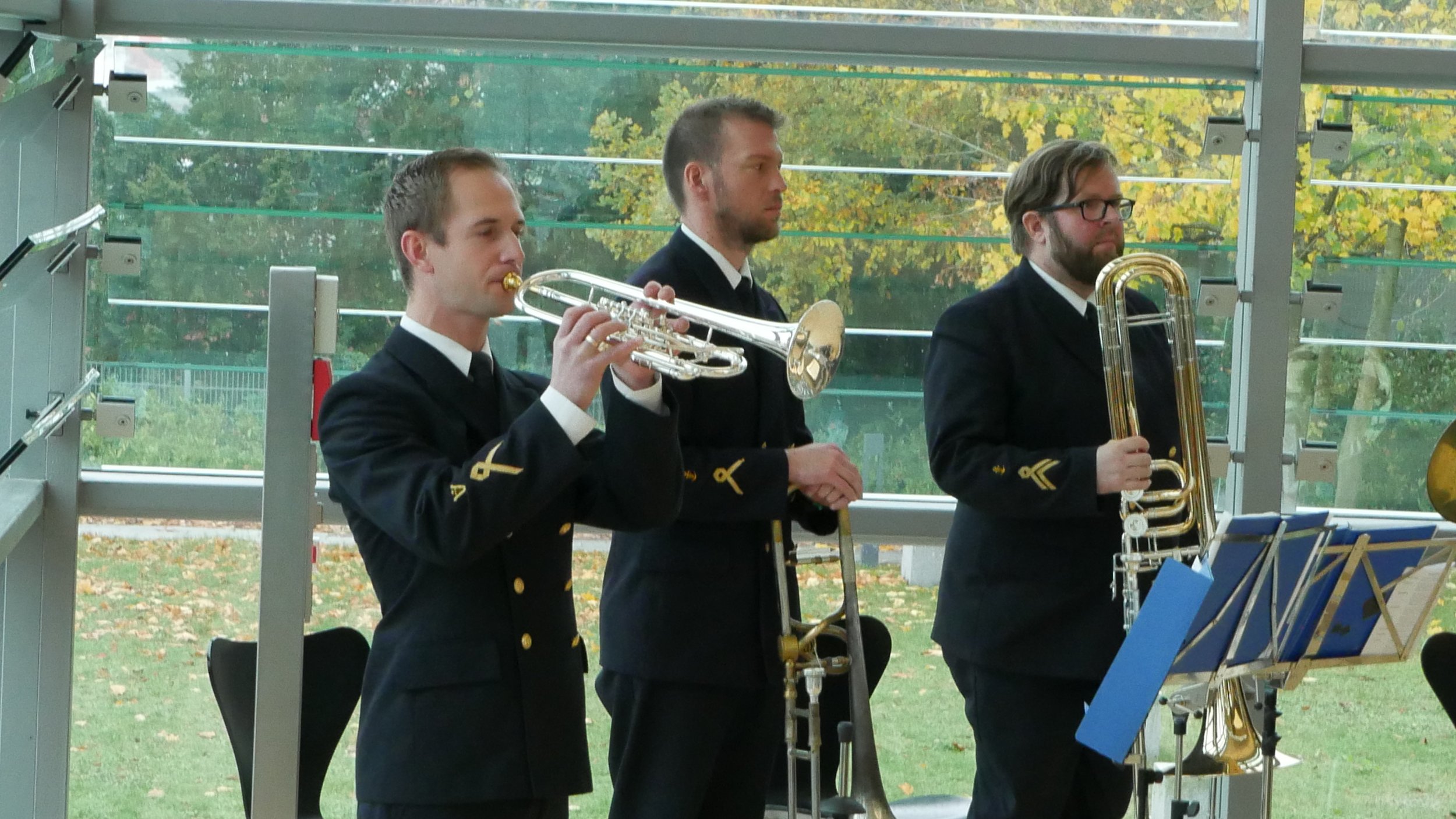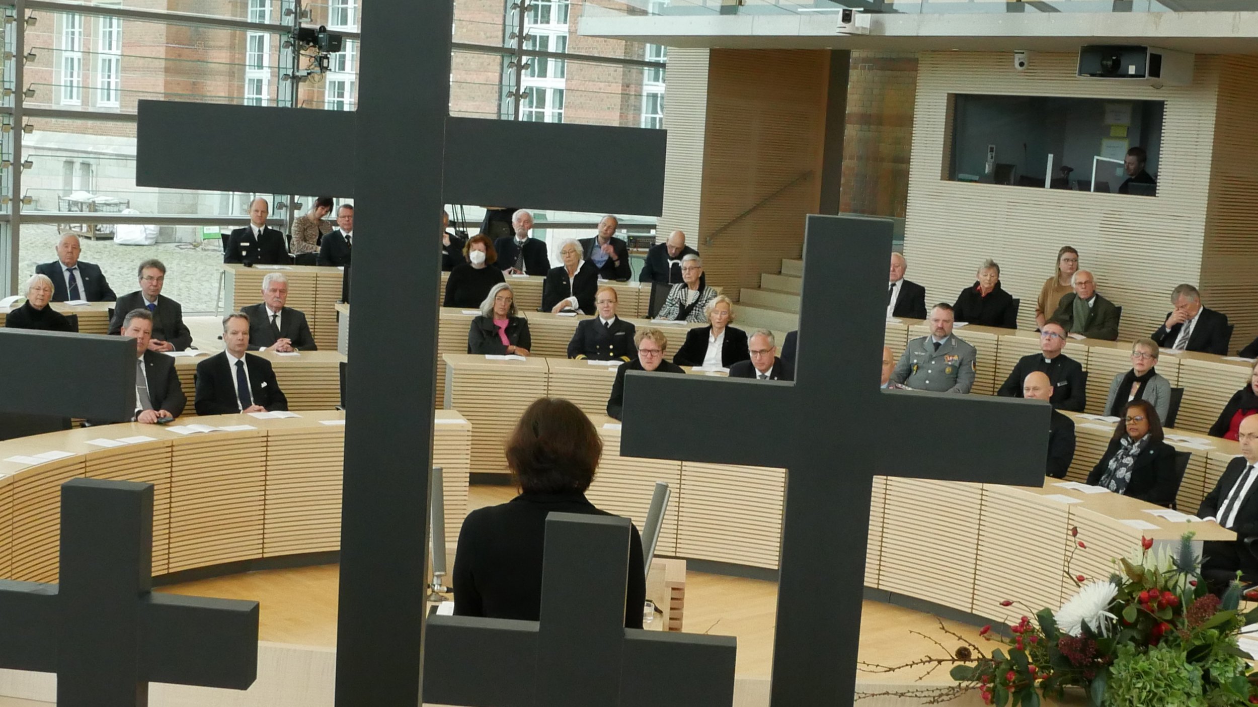 Das traditionelle Totengedenken, gesprochen von Landtagspräsidentin Kristina Herbst, sowie das "Lied vom guten Kameraden" und die Nationalhymne, gespielt vom Blechbläserquintett des Marinemusikkorps Kiel unter der Leitung von Hauptbootmann Felix Smigaj, beendeten die Gedenkstunde.