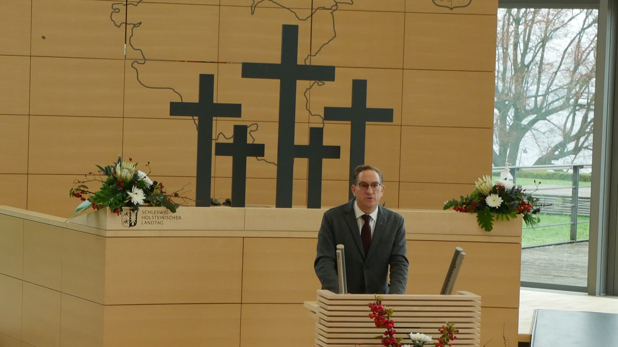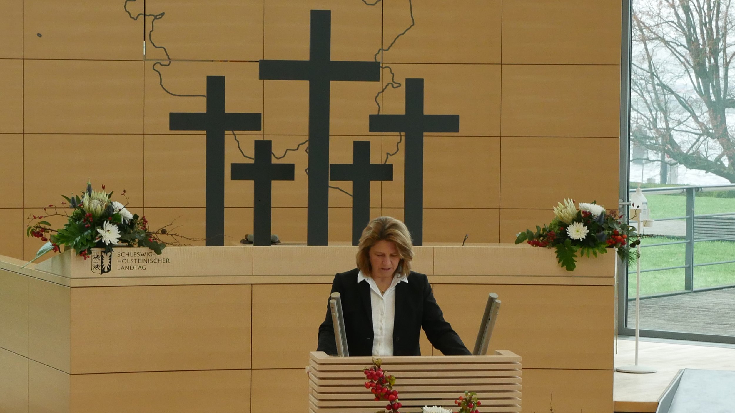 Parlamentspräsidentin Kristina Herbst, die auch Schirmherrin des schleswig-holsteinischen Volksbundes ist, hielt dabei die Gedenkrede. Seit über 100 Jahren sei der Volkstrauertag der wichtigste Gedenktag für die Opfer von Krieg und Gewaltherrschaft, sagte Herbst. „Und der Tag schließt alle mit ein: Soldatinnen und Soldaten, Zivilistinnen und Zivilisten, Opfer von Vertreibungen und Unterdrückung, geflüchtete Menschen und die ermordeten Menschen der NS-Diktatur und anderer Gewaltherrschaften. Ihrer gedenken wir heute und in Zukunft.“