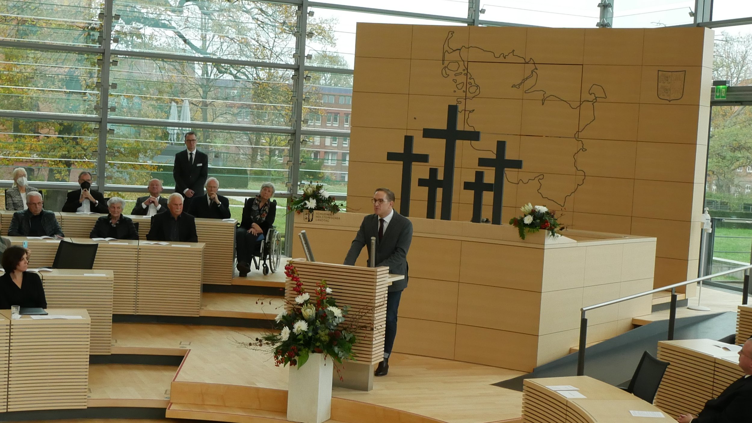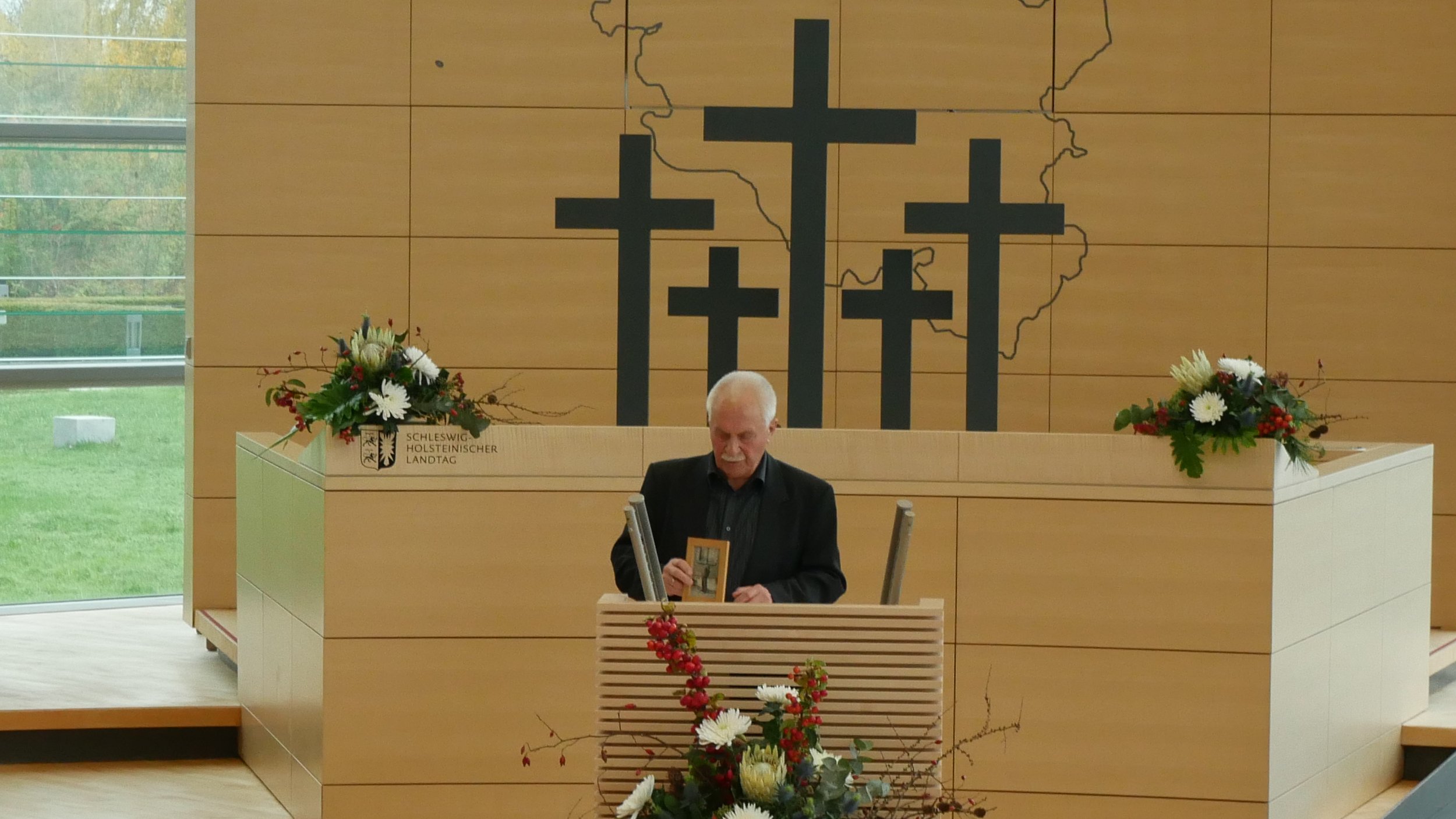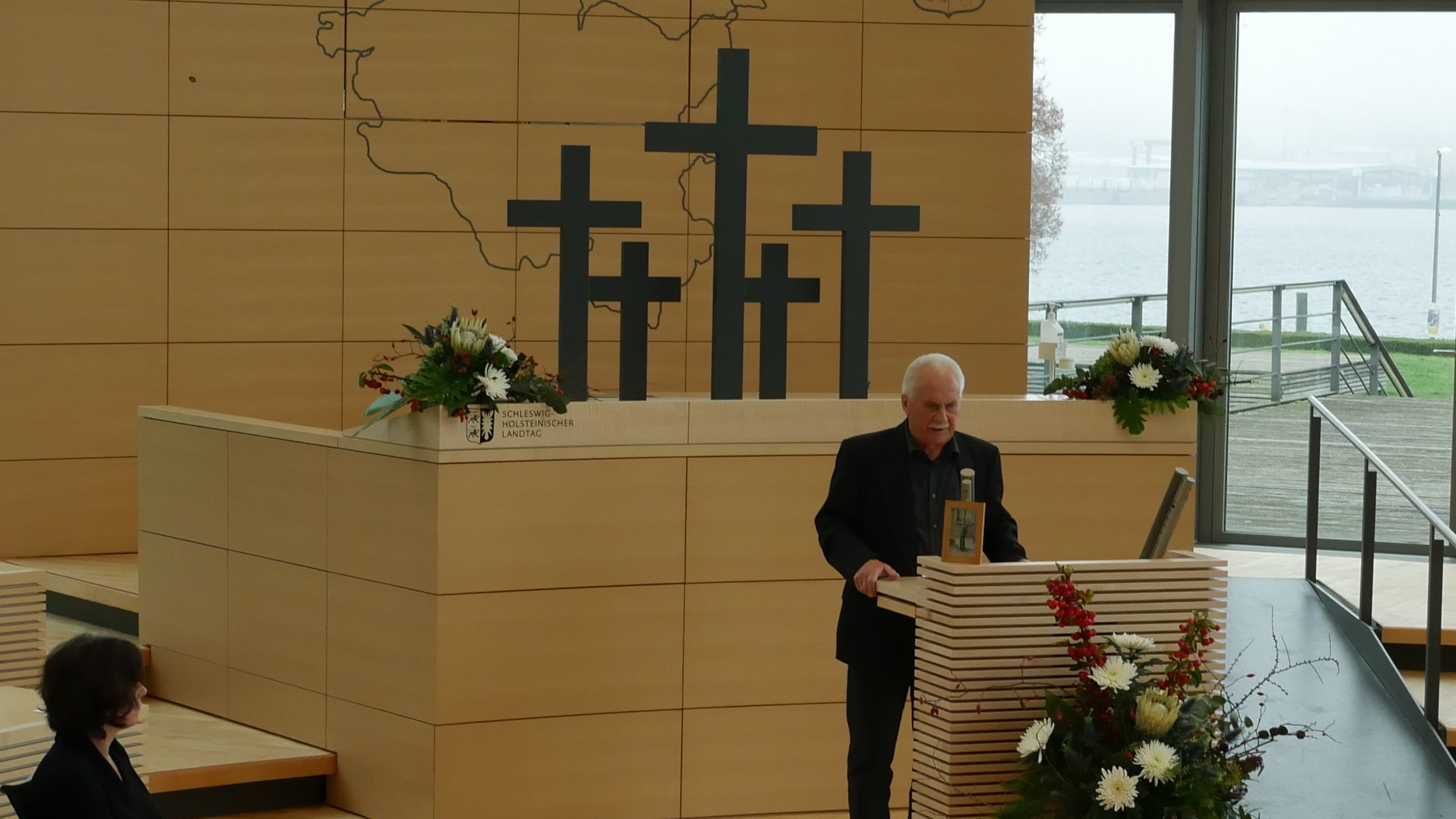 Im Anschluss an die Gedenkrede der Landtagspräsidentin sprachen dann noch Lars-Arne Walter aus Lübeck und Franz-Josef Heckrodt aus Kiel in persönlichen Beiträgen über ihre „Gedanken zum Volkstrauertag“.