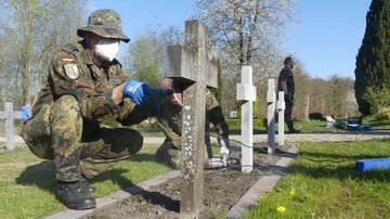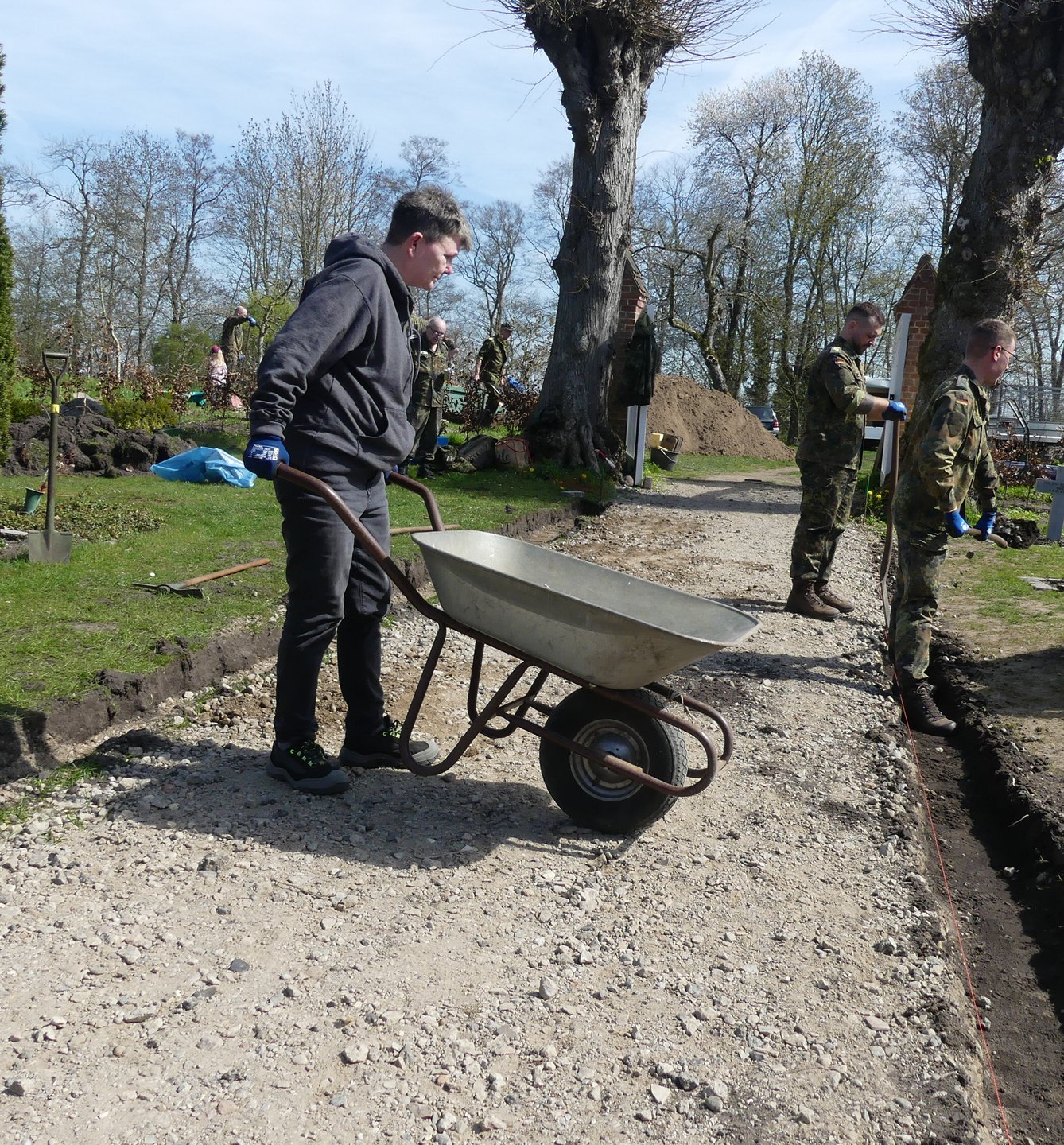 Am 22. April fand auf dem Kadettenfriedhof in Plön der zweite Kriegsgräberpflegeinsatz statt. Der Standortfeldwebel Plön, Stabsfeldwebel Lars Bauer, der Friedhofsverwalter Torsten Fehre und der Reservistenbeauftragte des Volksbundes, Oberstabsfeldwebel a.D. Jürgen Spill, trafen sich schon zu Beginn des Jahres zwecks detaillierter Absprachen für diesen Einsatz. Es stellte sich schon bei diesem Gespräch heraus, dass es diesmal sehr viel zu tun gibt. Das erforderliche Material wie Steine, Sand zum Auffüllen der Gehwege und die erforderlichen Maschinen, Betonmischer, Schaufeln und Hacken wurden von der Friedhofsverwaltung bereitgestellt. Der Organisationsleiter Hohn des Reservistenverbandes, Hauptfeldwebel d.R. Deert Rieve, stellte ein Stromerzeugeraggregat zur Verfügung. Nun fehlten nur noch die erforderlichen Unterstützer.