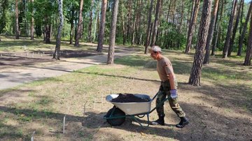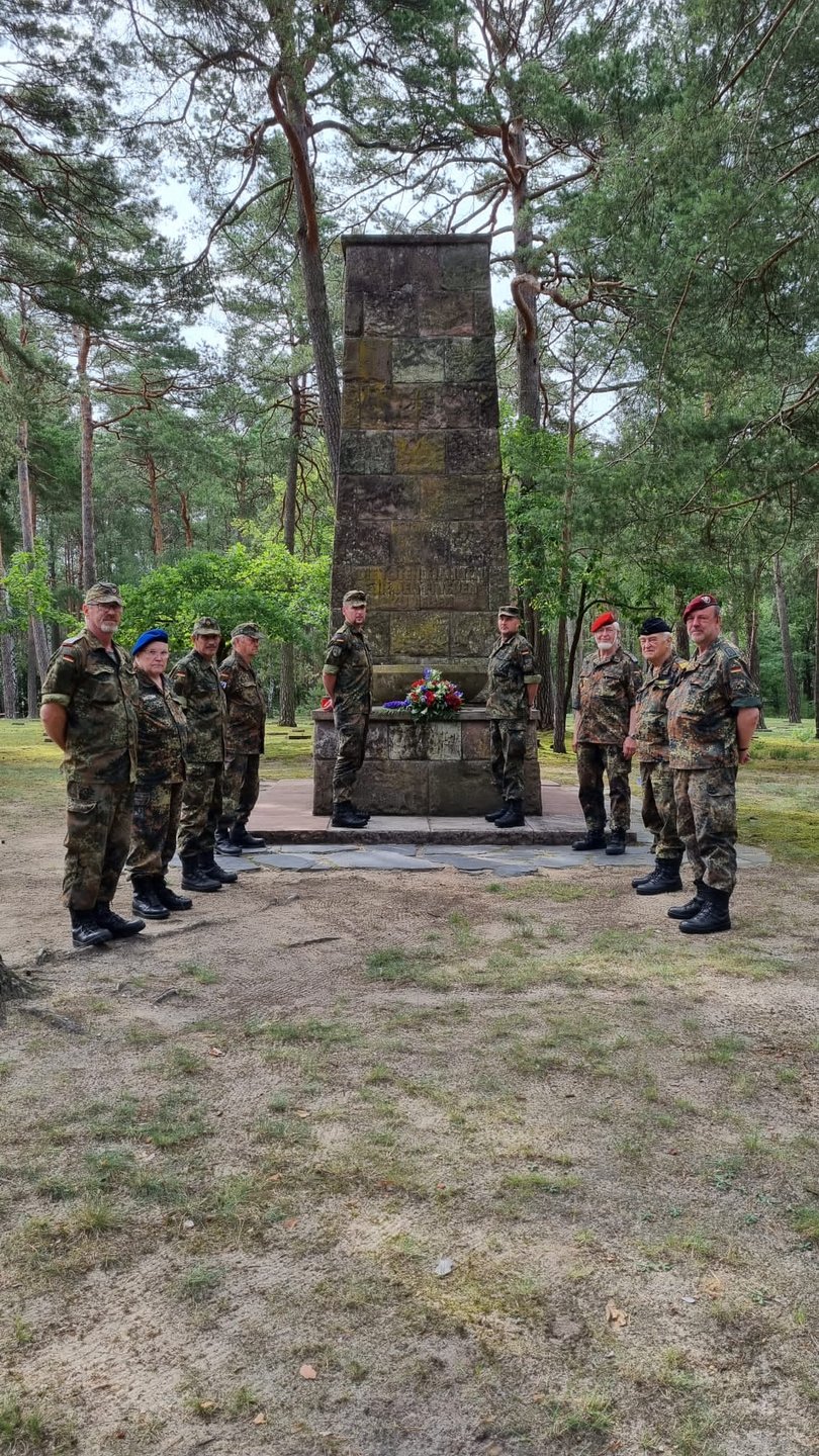 Insgesamt neun Reservisten aus Schleswig-Holstein waren vom 12. bis 23. Juli 2021 in Brandenburg im Kriegsgräberpflegeeinsatz. Kommandoführer war zum wiederholten Male der Oberstabsfeldwebel d.R. Günter Niehuus. Die Reservisten reinigten auf dem Soldatenfriedhof in HALBE 1.200 Grabsteine, 70 Gräber wurden mit Muttererde aufgeschüttet, 500 m Jägerzaun wurde gestrichen und 20 Bänke geschliffen und neu gestrichen. Am 22.07.2021 wurde eine Kranzniederlegung durchgeführt, bei der auch einige Besucher des Friedhofes dabei waren. Kapitänleutnant d.R. Klaus Bregas, Pastor im Ruhestand, sprach ein paar Worte am Denkmal eines unbekannten Soldaten.