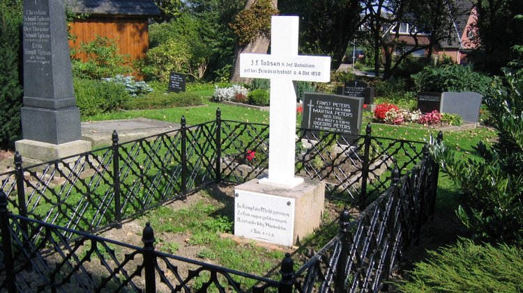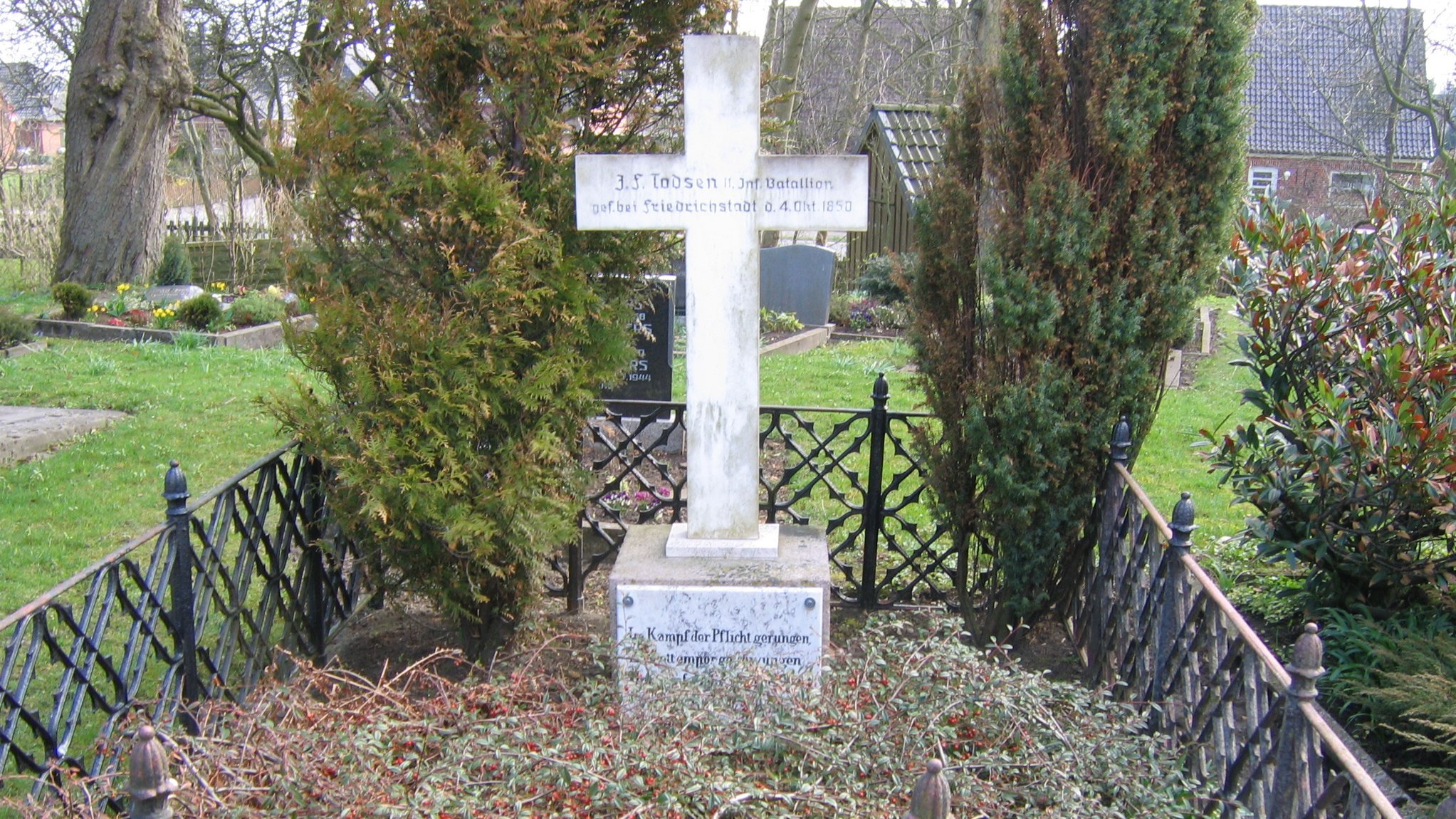 Neben zwei dänischen Gräbern und einem Obelisken aus Marmor, der an die vor Friedrichstadt im Oktober 1850 gefallenen schleswig-holsteinischen Soldaten erinnert, befindet sich hier das Grab von J.F. Todsen, gefallen am 04.10.1850 bei Friedrichstadt.