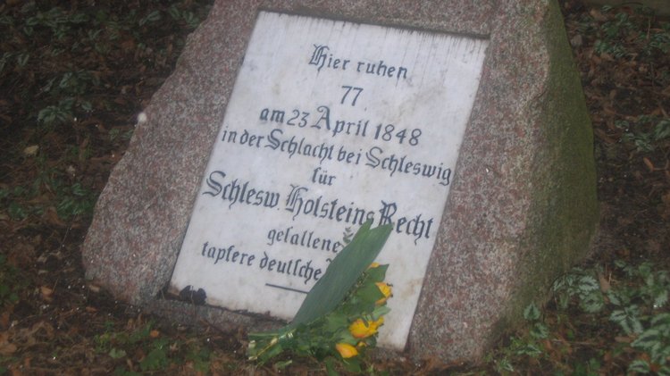 Auf dem alten Friedhof an der Dreifaltigkeitskirche im Schleswiger Stadtteil Friedrichsberg befinden sich Gräber von insgesamt 16 dänischen und 11 preußischen Soldaten, die zwischen 1848 und 1851 bei Schleswig gefallen oder im Lazarett verstorben sind sowie ein Sammelgrab für 77 namenlose deutsche Soldaten, die am 23.04.1848 in der Schlacht bei Schleswig ihr Leben verloren.