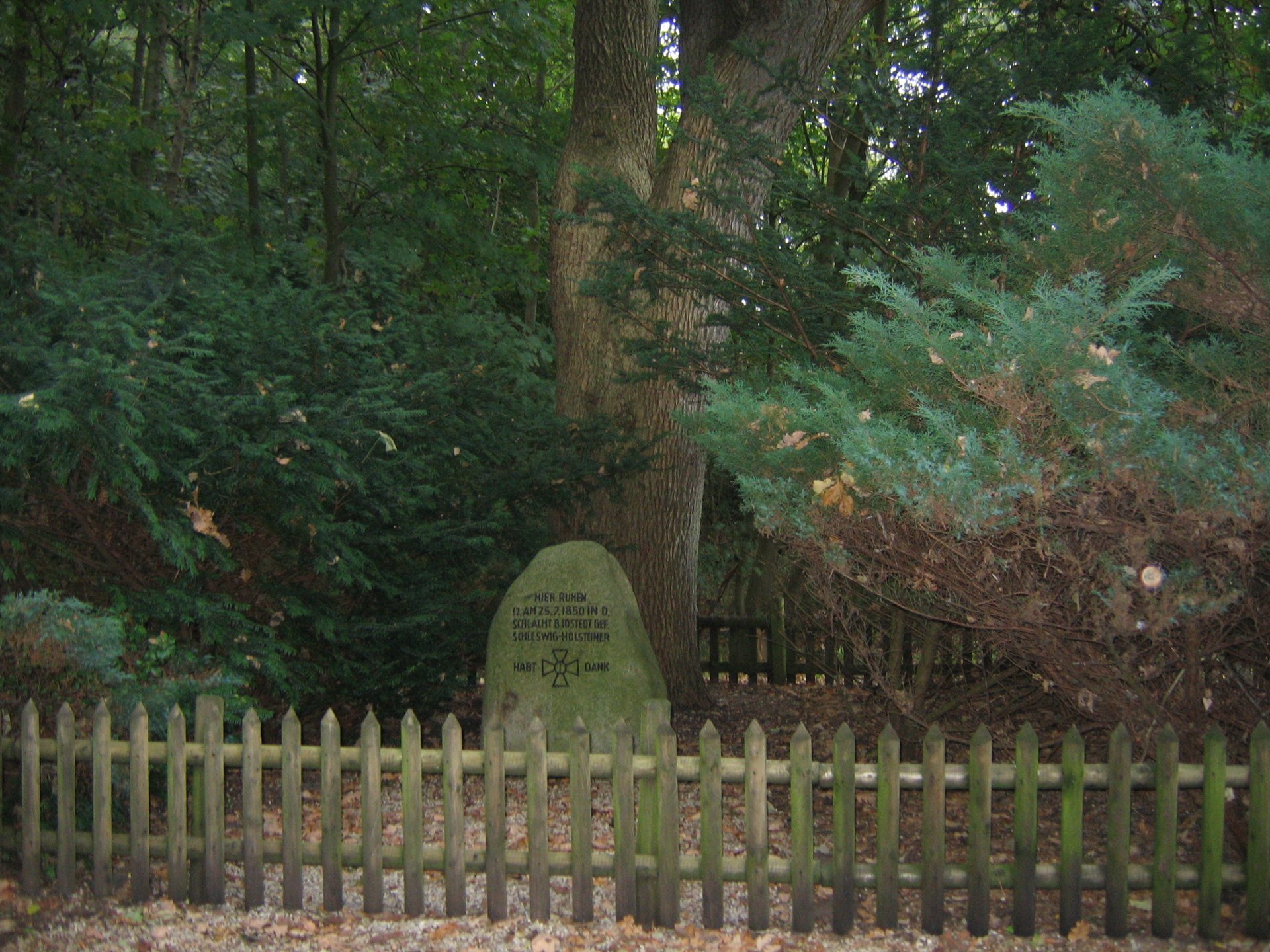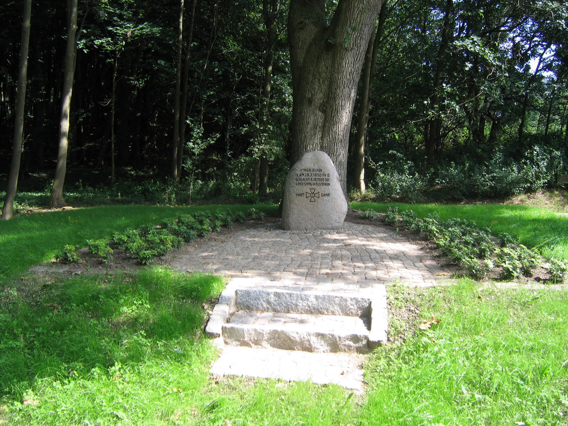 Ein Findling aus Granit erinnert an 12 Schleswig-Holsteiner, die am 25.07.1850 in der Schlacht bei Idstedt fielen und hier ihre letzte Ruhestätte gefunden haben. Die Anlage wurde in Zusammenarbeit mit dem Kreis Schleswig-Flensburg 2008 von Grund auf renoviert und neu gestaltet und am Idstedt-Tag, dem 25.07.2008, wieder an die Idstedt-Stiftung übergeben.