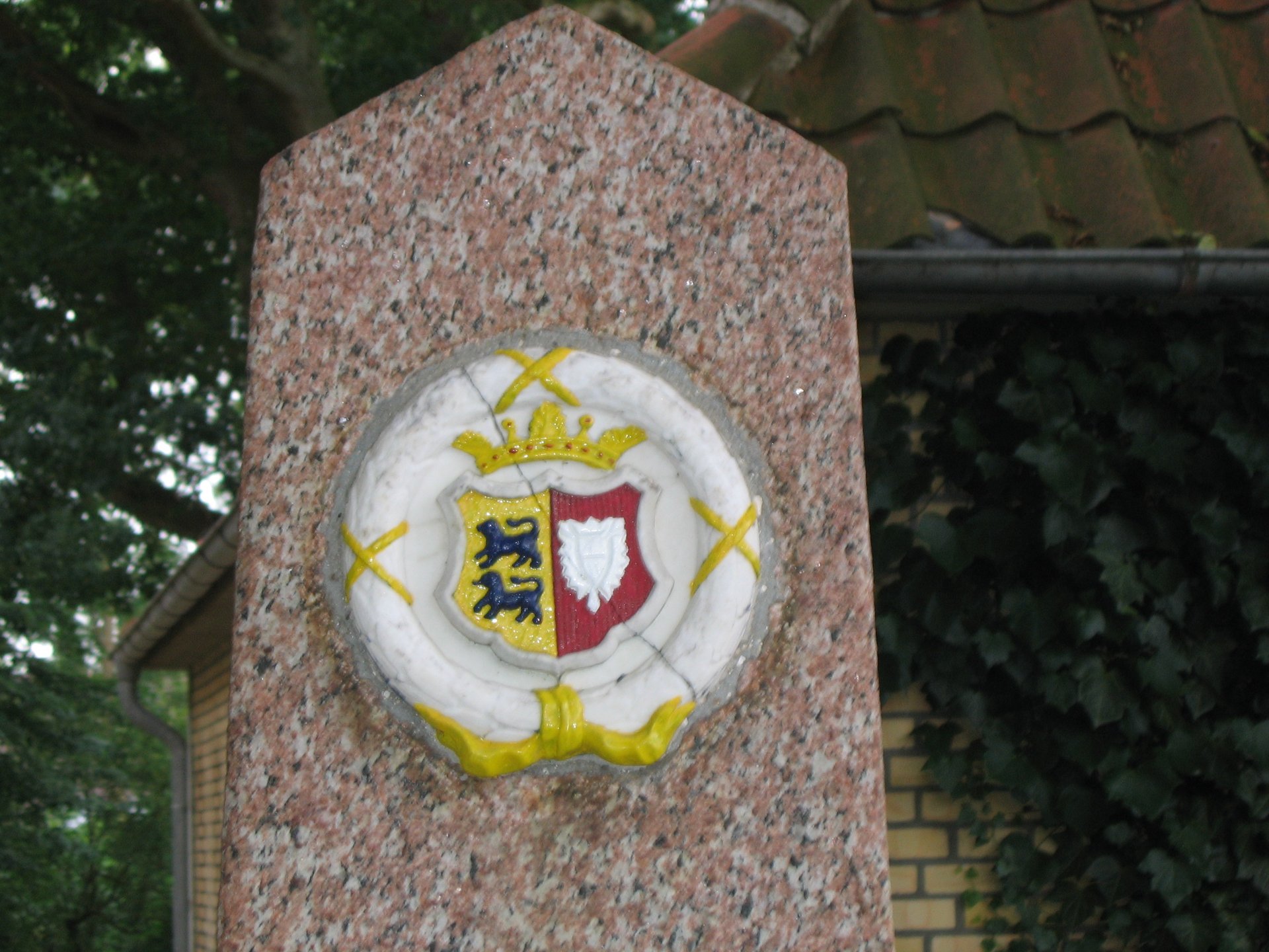 Im Sockel der Säule befindet sich eine eingelassene Platte mit zwei gekreuzten Seitengewehren, um die das schleswig-holsteinische „Eiserne Kreuz“ gebunden ist, am Kopf der Säule ist das schleswig-holsteinische Landeswappen eingebracht.