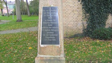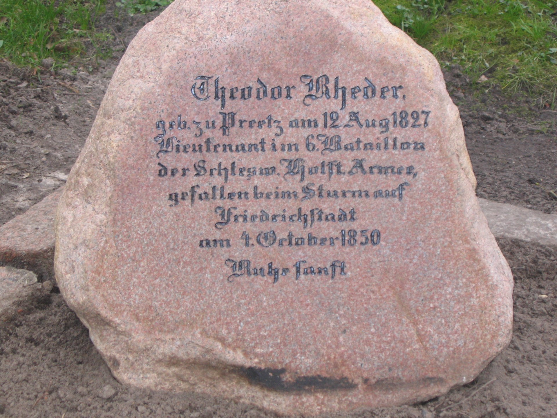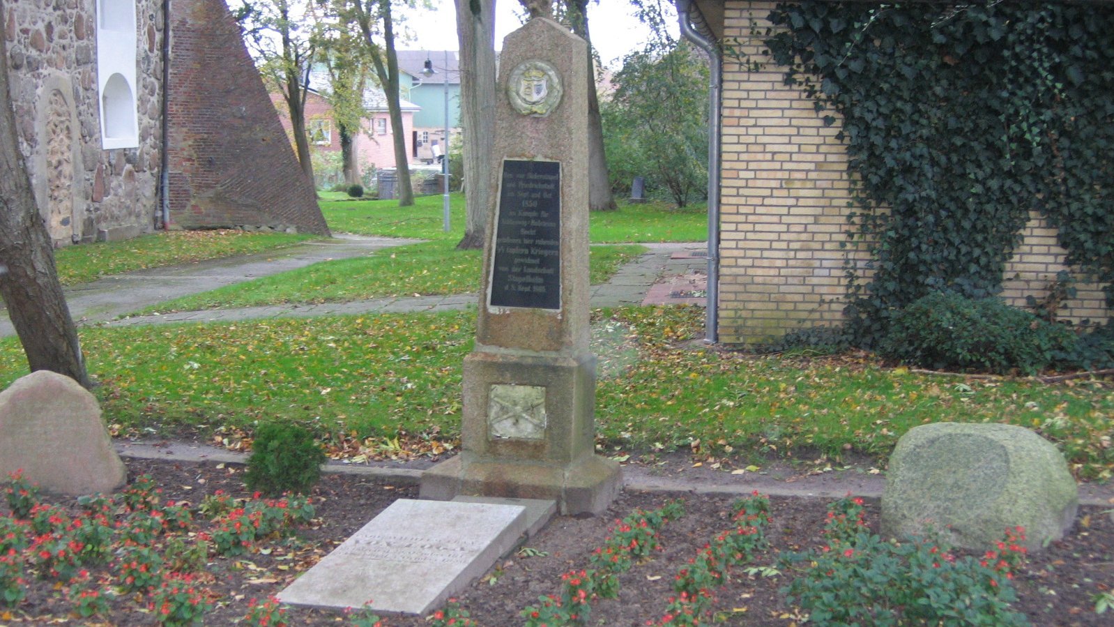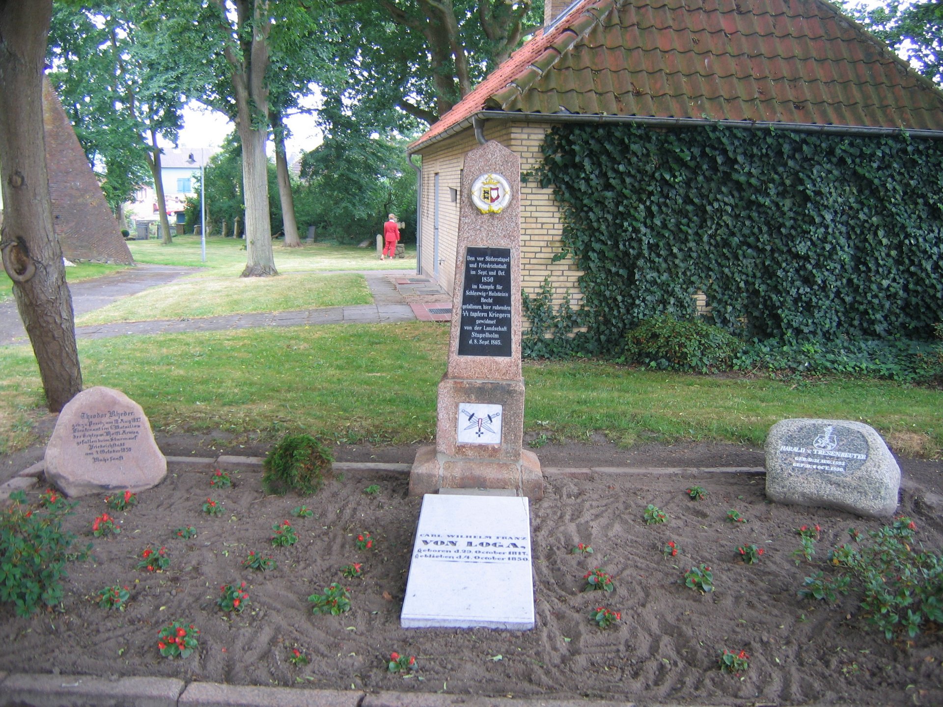 Eine etwa 2,50 m hohe Säule aus Granit mit schwarzer Marmortafel erinnert an 44 Soldaten, nach dem Totenregister der Kirchengemeinde Süderstapel 41 Angehörige der schleswig-holsteinischen Armee und 3 unbekannte Soldaten des dänischen Heeres, die im September und Oktober 1850 vor Süderstapel und Friedrichstadt fielen und hier beigesetzt wurden.