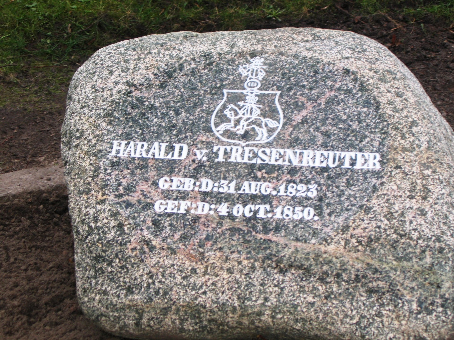 Vor und neben der Säule sind in der Anlage noch drei einzelne Grabzeichen, zwei Findlinge und eine liegende Marmorplatte, eingebracht. Insbesondere bei den Findlingen waren Inschriften und das eingelassene Wappen der Familie v. Tresenreuter unlesbar und praktisch nicht mehr zu erkennen. Alle Inschriften wurden nachgearbeitet und so wieder lesbar gemacht.